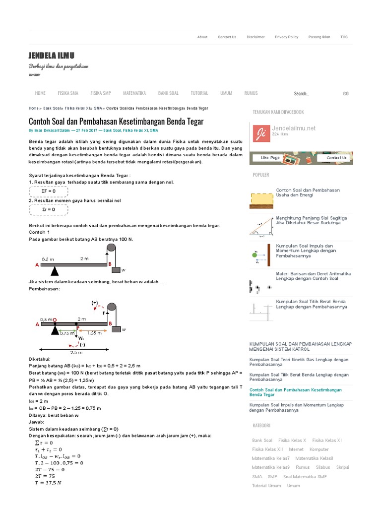 12 Contoh Soal Benda Tegar Dan Penyelesaiannya