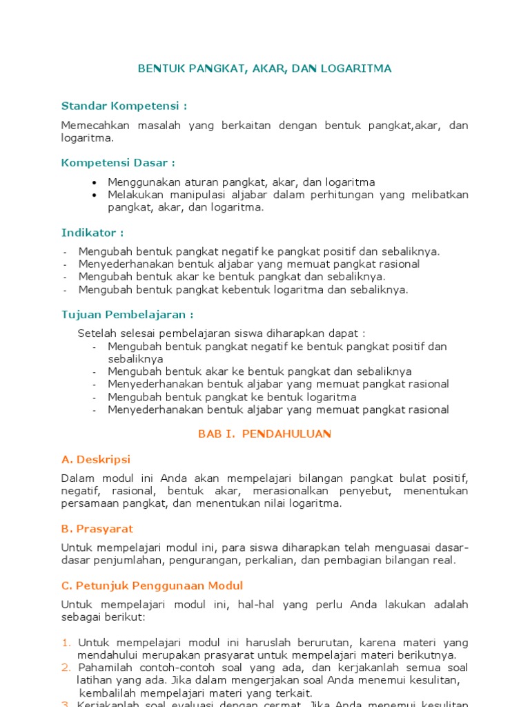 7 Contoh Soal Bentuk Akar Dan Perpangkatan