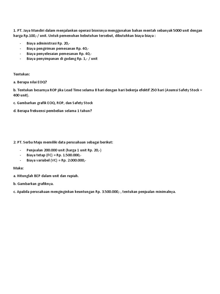 8 Contoh Soal Bep Mixed. Lalu bagaimana rumus juga cara menghitung bep? Seseorang dengan modal rp 1000000 ingin membuka bisnis usaha martabak telor. Nah mengenai benar atau salahnya saya sendiri belum tahu.